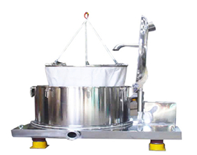 PD系列吊袋離心機結合國情自行設計制造的新型離心機,其驅動(dòng)電機既可采用離合器啟動(dòng),也可由變頻調速系統控制,啟動(dòng)平穩,通過(guò)三角帶將動(dòng)力傳遞給轉鼓,帶動(dòng)轉鼓使轉鼓自身軸線(xiàn)高速旋轉,形成離心力場(chǎng),待分離的物料經(jīng)上部加料管進(jìn)入高速旋轉的轉鼓內,在離心機力場(chǎng)作用下,物料均布在轉鼓壁上進(jìn)行離心過(guò)程,液相透過(guò)固相物料及濾袋的縫隙,經(jīng)轉鼓孔甩至機殼空腔,從底盤(pán)出液口排出,固相物料則被截留在濾袋內。停機后,開(kāi)啟機蓋(借助特殊設計的平衡助力裝置),拔出蘭蓋鎖緊栓,用特制的吊具將濾餅吊出機外設定地點(diǎn)卸料,即完成一個(gè)工作循環(huán)。機蓋上配有洗滌管,可以對物料進(jìn)行洗滌。